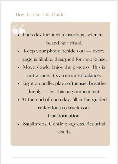 Each day focuses on one science-backed goal: hydration, strength, scalp health, elasticity, shine, or softness.
